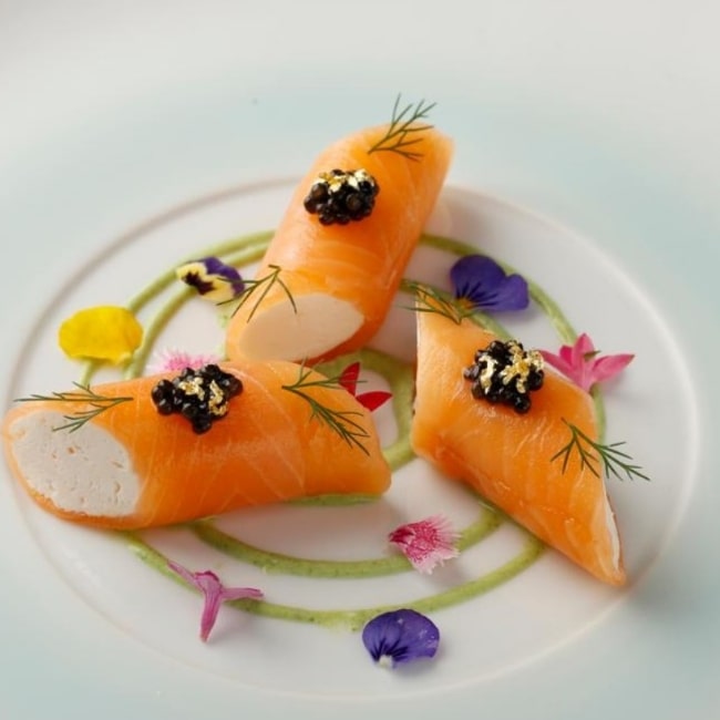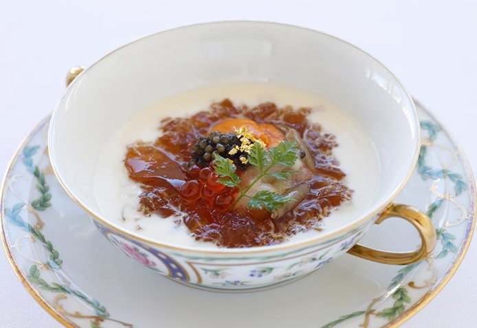 - ズワイガニとオシェトラキャビア、ウニのエスプーマ