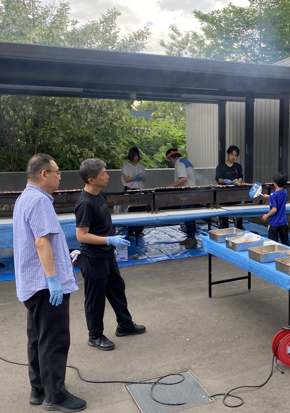 約2か月前から準備に入り、札幌市福祉課からの施設紹介、アポイントメント、施設表敬訪問、施設担当者打合せ、社内打合せ、食材や備品の準備、当日仕込みなど業務は様々あります。朝5時から食材仕込みをする事もありました。一番労力を使ったのは50㎏もある焼き台を6台持ち運んだ時です。